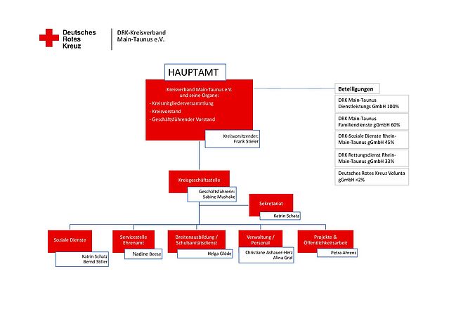 Hier finden Sie die Organigramme Hauptamt und Ehrenamt des DRK Kreisverbands Main-Taunus e.V.